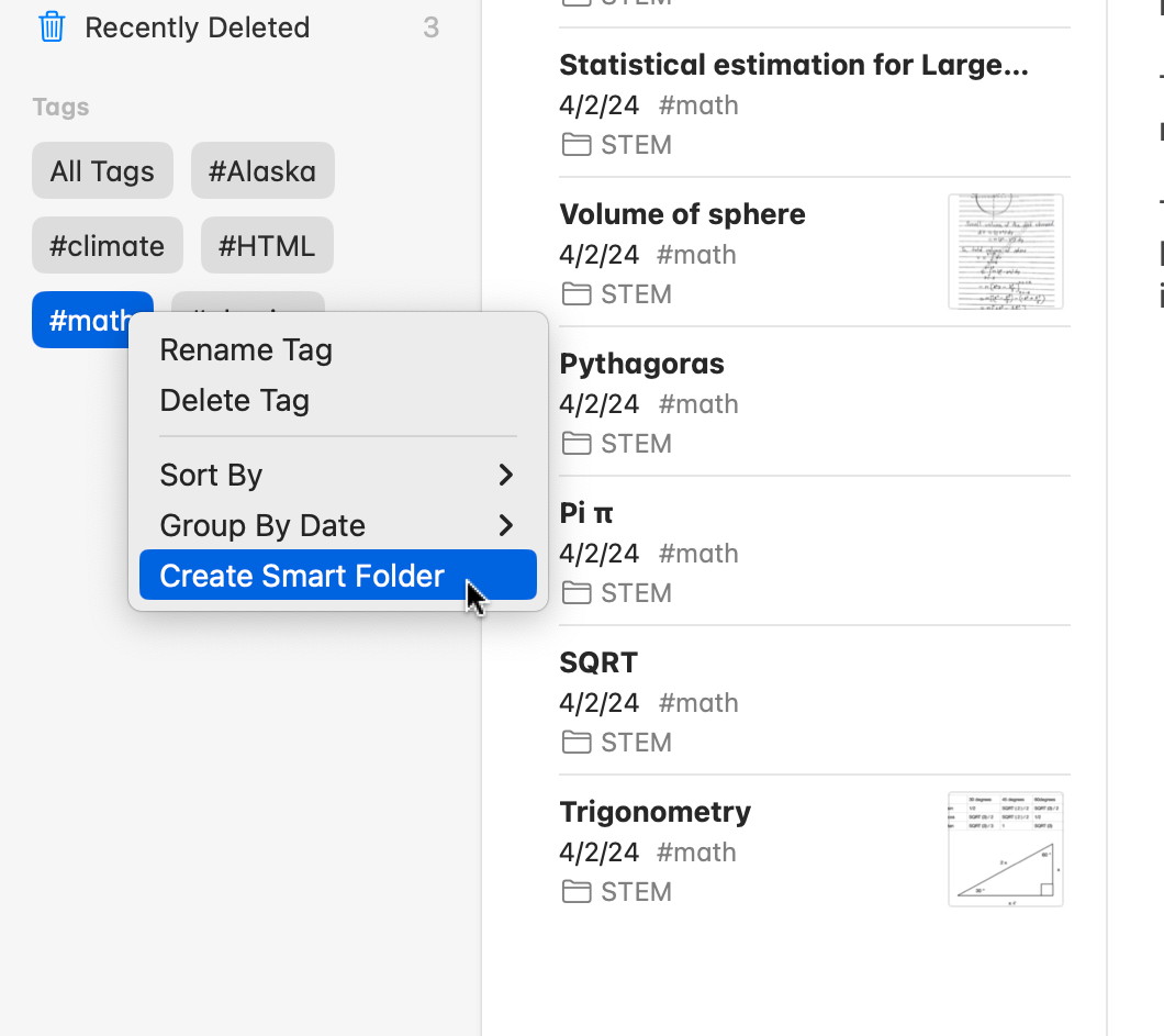 Smart folders are used to stare copies of all the files that share a common tag. They can be made either by using the File meno or by right clicking on an existing tag / tags and using the pop-up menu: