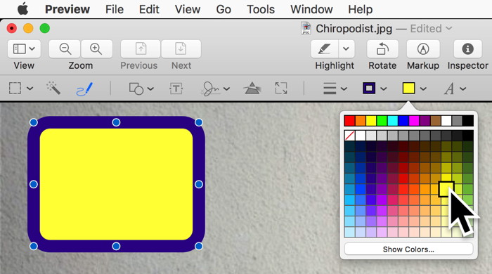 Markup icon. If it is not on the tool bar the drag it up there. The Markup Toolbar now shows up in a number of places on a Mac where graphics are used. This includes Preview, Mail, and Notes. It was added to OS-X with Sierra. Here are the tools in the Markup Toolbar:
